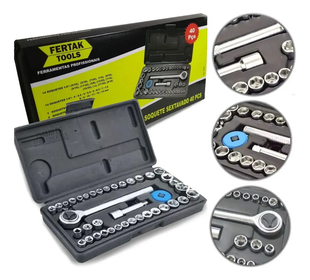 Jogo De Soquetes Sextavados Com Catraca 40 Peças - Fertak 48